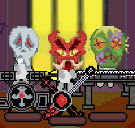 Control your band through their gothic serenade! Hit the notes on beat to keep the spell possessing the band from breaking. Your jam starts simple with one member playing, but gradually adds more members. Swap between each of them to hit their notes and keep the band alive!